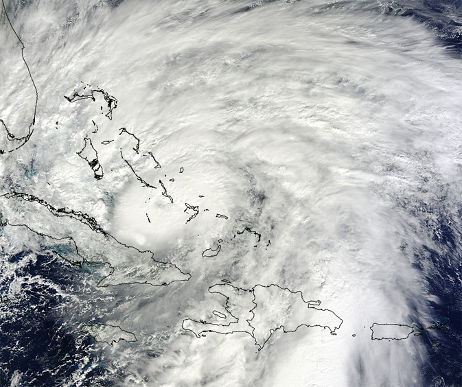 This impressive photo of Hurricane Sandy over the Bahamas and heading towards the coast of Florida was taken by NASA’s Moderate Resolution Imaging Spectroradiometer (MODIS) instrument aboard