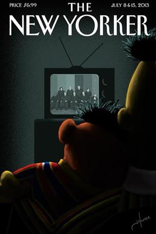 Shame on The New Yorker Magazine for trivializing the historic DOMA decision, clearing the way for gay couples to receive federal benefits. Jack Hunter, the artist behind the cover titled, “Moment of Joy” said the following in response to the DOMA decision, “It’s amazing to witness how attitudes on gay rights have evolved in my lifetime. This is great for kids, a moment we can all celebrate.” While the decision is historic, I fail to understand how being great for kids relates to Bert & Ernie. The Sesame Street characters are Muppets; loveable characters that most adults under the age of fifty can remember watching as children. While I certainly can’t speak for everyone, not once in my childhood did I think about whether Bert & Ernie were straight or gay. And the fact that it might matter to anyone, I will go on the record as claiming, he or she, straight or gay needs many years of counseling. Some things should be off-limits like the innocence of children. How dare anyone try to hijack that innocence for notoriety, financial or political gain. Bert & Ernie are simply best Muppet friends, period end of story. Next thing that we’ll hear is that rubber duckie is actually a sex toy. You know, there was a time that Gay meant light-hearted, happy, and carefree. Perhaps that’s the true meaning of what the New Yorker and Jack Hunter meant to Portray?!