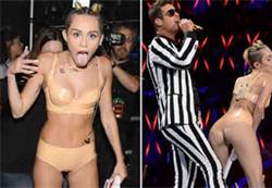 What Miley Cyrus did the other night at the Video Music Awards goes beyond the shallow take away most news agencies and people in the entertainment industry were buzzing about. Quite frankly, her performance wasn’t all that outlandish given the performer and the times. So she bumped and grinded and played with a foam finger. I, was quite frankly, surprised by the reactions. Apparently, most people missed the really important part of the performance and she put it over on everyone. Not only is Miley Cyrus unattractive, despite her tiny outfit, she has very little talent. She can’t dance, she sings like a whiny Jewish mother and she isn’t sexy. Of course any woman displaying moves like those displayed on stage could capture the attention of dumb men but she’s clumsy and ungraceful. Sexy is something that some women have and some don’t and she doesn’t. Perhaps it’s her youth and inexperience. It wasn’t tasteful, but it definitely wasn’t sexy. But again, Miley Cyrus has pulled a fast one. She has taken her minimal talent to new heights. Even this writer, who hates giving her any more attention then she deserves, is speaking about her. She was trending at #1 on Twitter. Bad publicity is still publicity. To explain that I don’t just have it in for her, I also completely detest Gaga Girl but at least she has talent. That can’t be denied, so it’s simply my opinion that I don’t like her or her music. You can throw U2 in there as well. Let’s just hope that the country eventually comes to its senses and sends Cyrus packing. That would truly be the definition of addition by subtraction